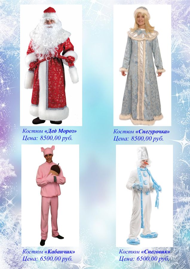 Яркий и веселый праздник для всех, но особенно его ждут наши детки. Дед Мороз и Снегурочка, персонажи из сказок и мультиков – главные герои новогодних елок! Наш коллектив поможет Вам изготовить новогодние костюмы. Срок изготовления 35 дней. Материал, фурнитура, размер изделия, модель - из этого складывается цена костюма. Шьем по Вашим эскизам.