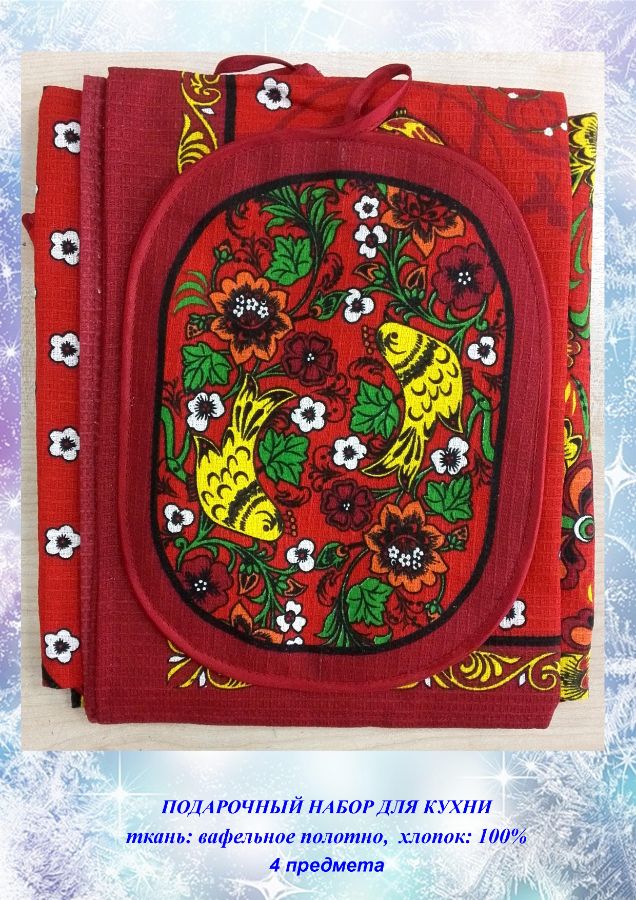 Подарочный комплект из вафельного полотна для кухни (4 предмета). Цена: 350 рублей.