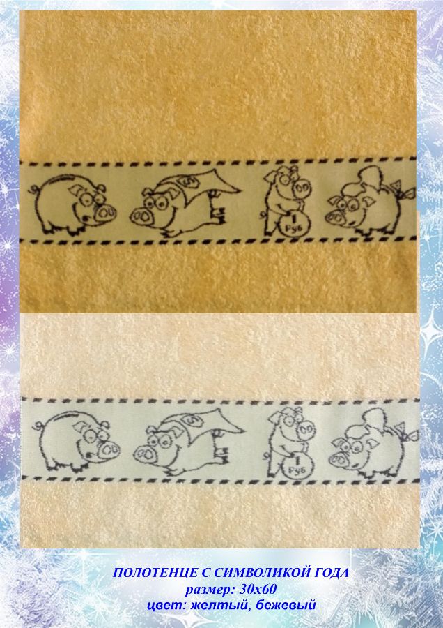 Мы предлагаем Вам разноцветную гамму полотенец (размер 30х60) с символикой года, зимними мотивами. Комплекты постельного белья, набор для кухни из 4-х предметов (фартук, полотенце, рукавица и прихватка) и многое другое для Вас!
