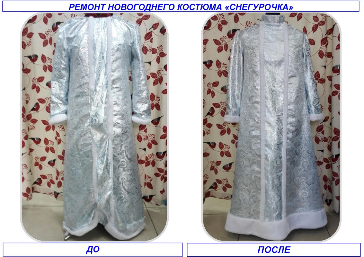 У каждого человека есть вещи, которые любимые, в хорошем состоянии, отлично сидят по фигуре, но из-за небольших дефектов не одеть. Наши высококвалифицированные мастера подскажут, как исправить и дать вещам вторую жизнь. Мы предоставляем услуги ремонта: замена замка, устранение затяжек, дырок, поставить незаметную заплатку, исправить дефекты расползания ткани по шву. Так же можем сшить новое изделие по образцу. Одежда в ремонт принимается только в чистом виде!